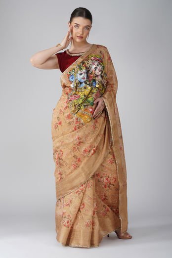 Experience the vibrant elegance of tradition reimagined—each saree in this collection tells a story through stunning hand-painted art and intricate detailing. The radiant yellow and earthy ochre fabrics are framed with shimmering embroidered borders, capturing the timeless spirit of Indian heritage. Paired with bold, artistic blouses, these looks celebrate expressive craftsmanship and the beauty of cultural symbolism. Effortlessly graceful and visually captivating, this shoot is a tribute to the allure of modern artistry woven with classic sophistication.
