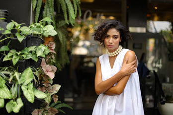 This shoot explores contemporary style with a touch of urban flair, featuring striking dresses in crisp white, bold black, and fresh shades of yellow. Each look plays with unique textures and accessories—pearl necklaces, statement belts, and elegant shoes—bringing together a sophisticated yet effortless vibe. Set across modern cityscapes and natural backdrops, the compositions balance relaxed poses with confident energy, capturing the versatility and individuality of today's fashion-forward woman.